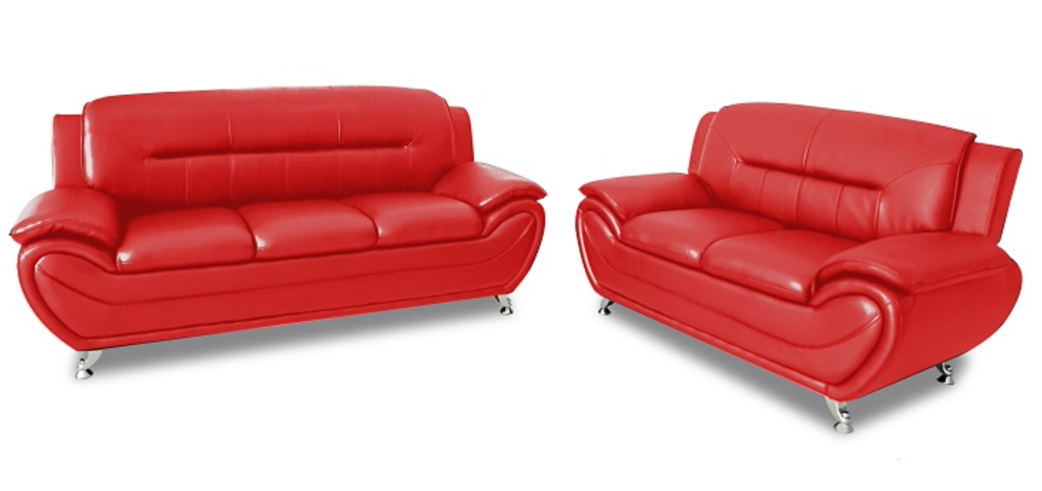 The Tivoli 2 piece living room set includes sofa and loveseat in faux leather upholstery.
