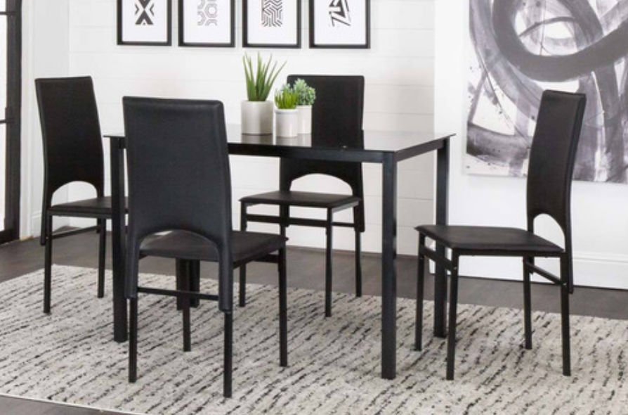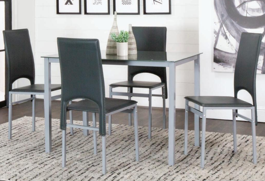 5 piece Andy dining set includes table and 4 chairs. Available in white, black or gray.