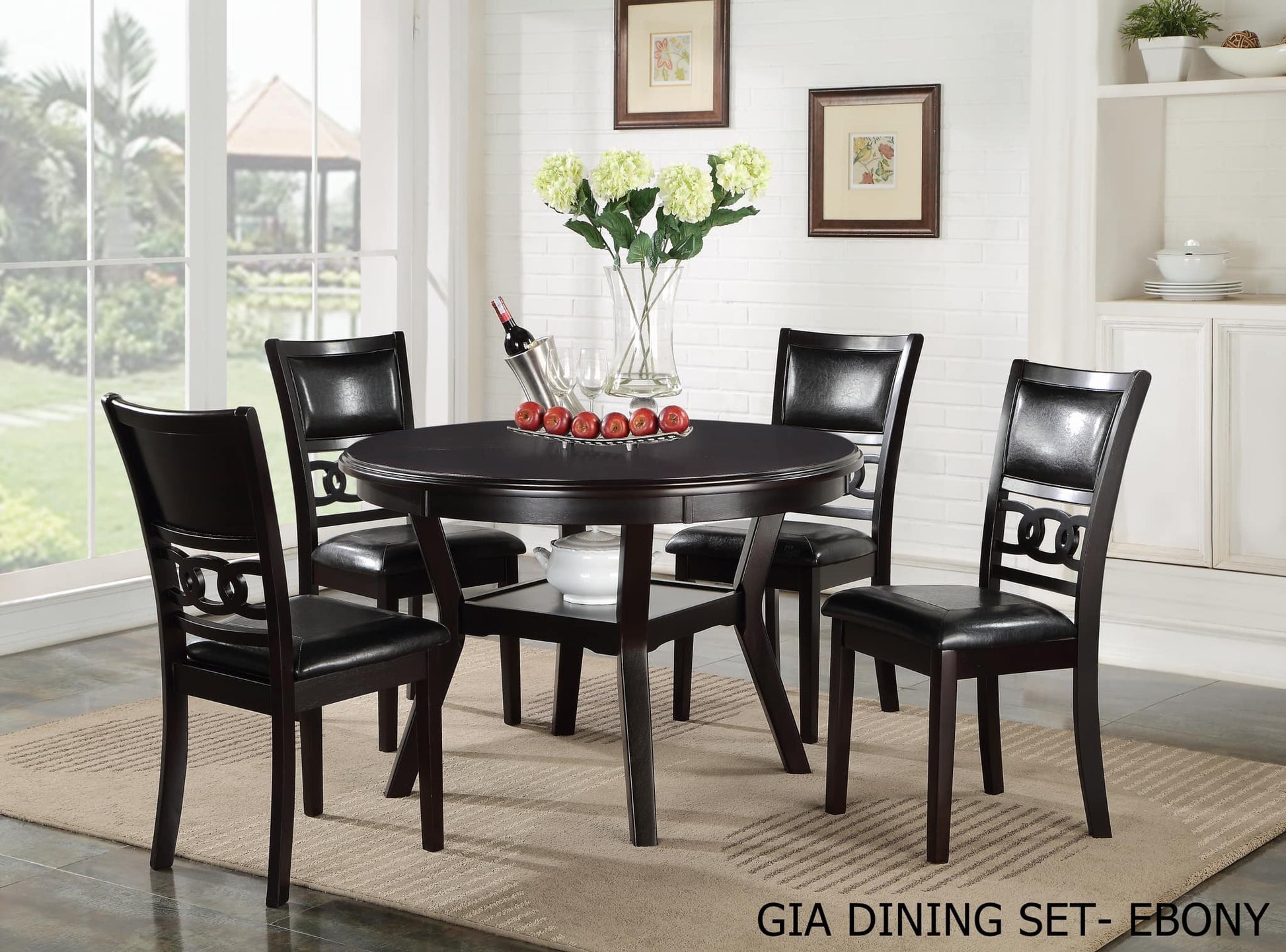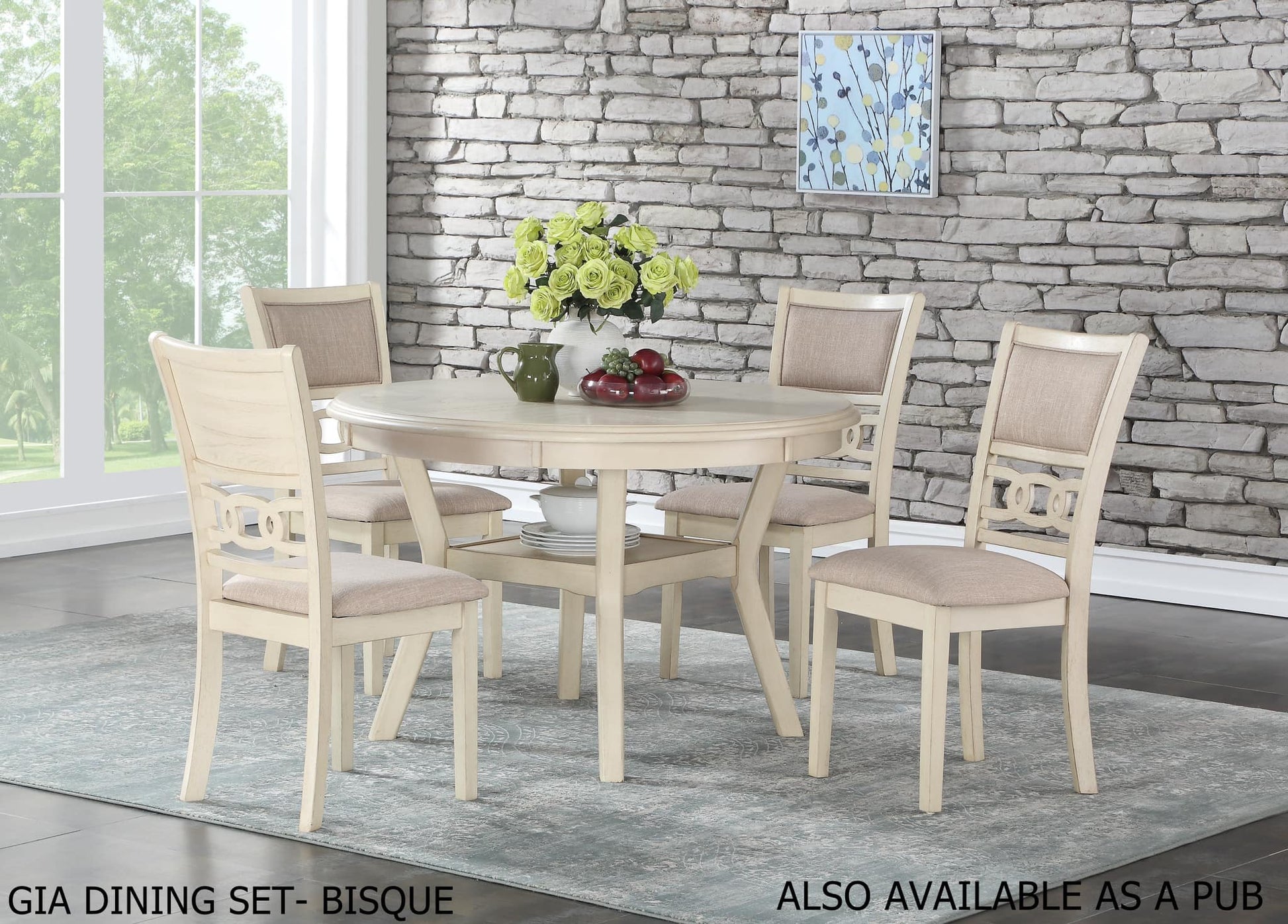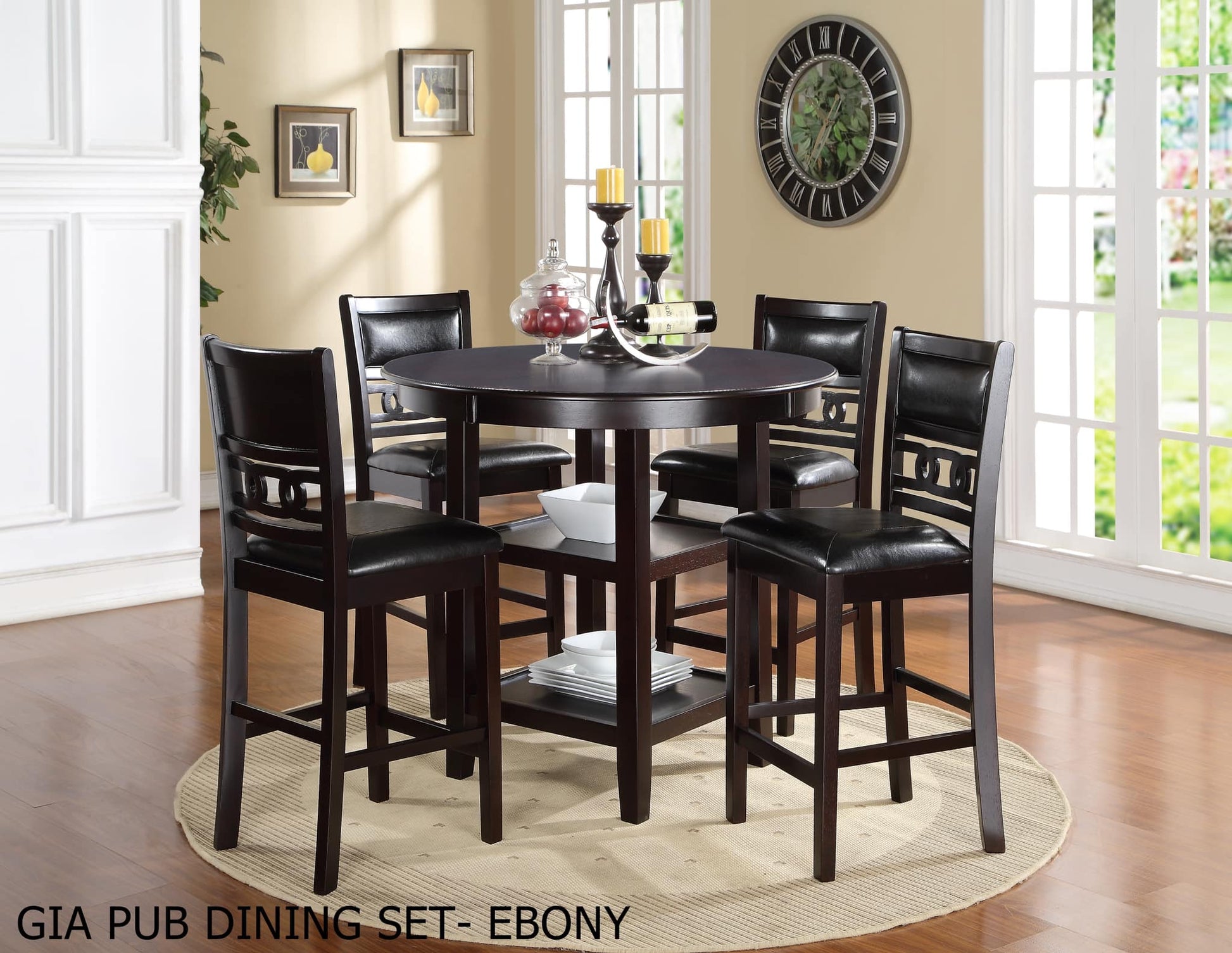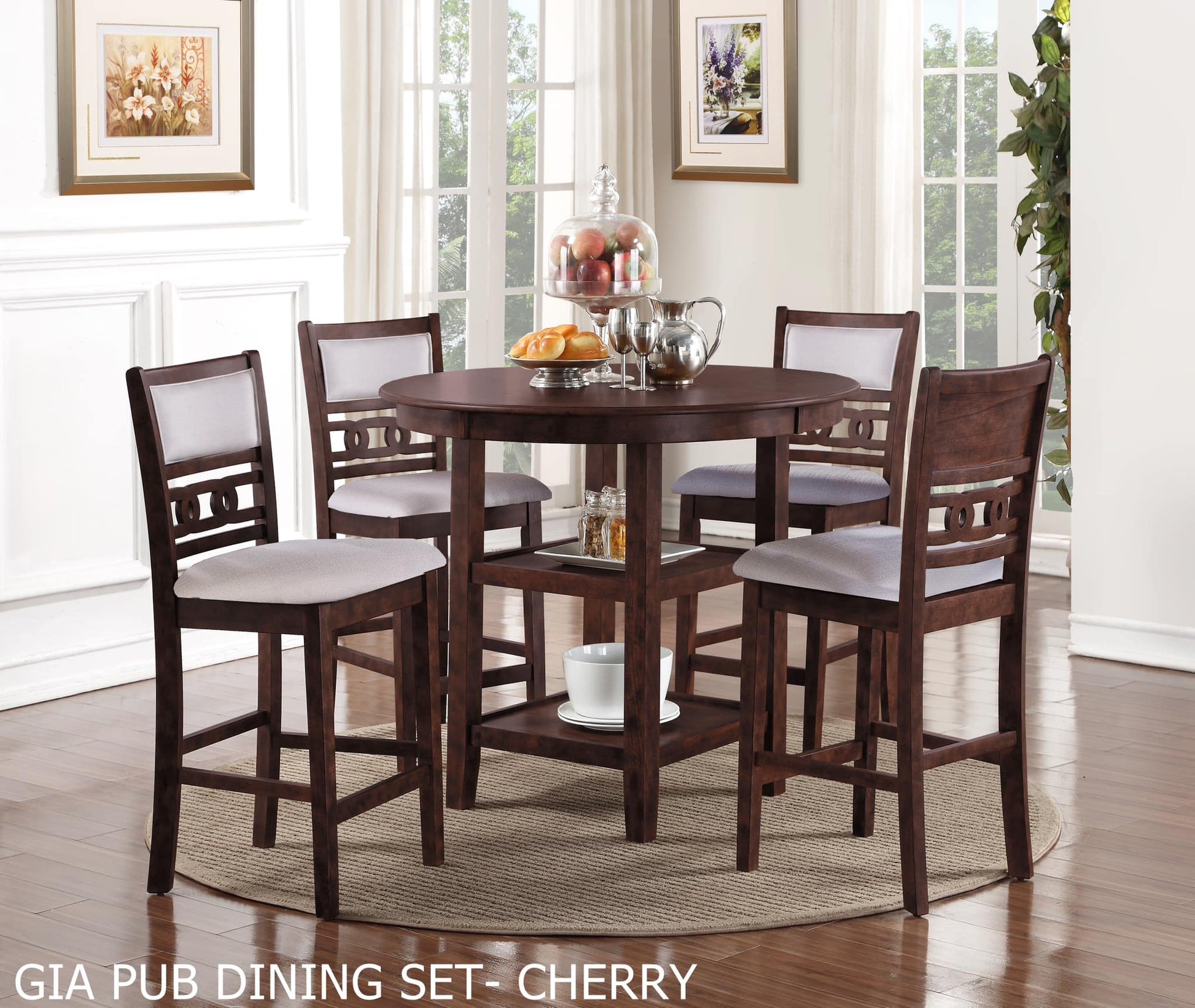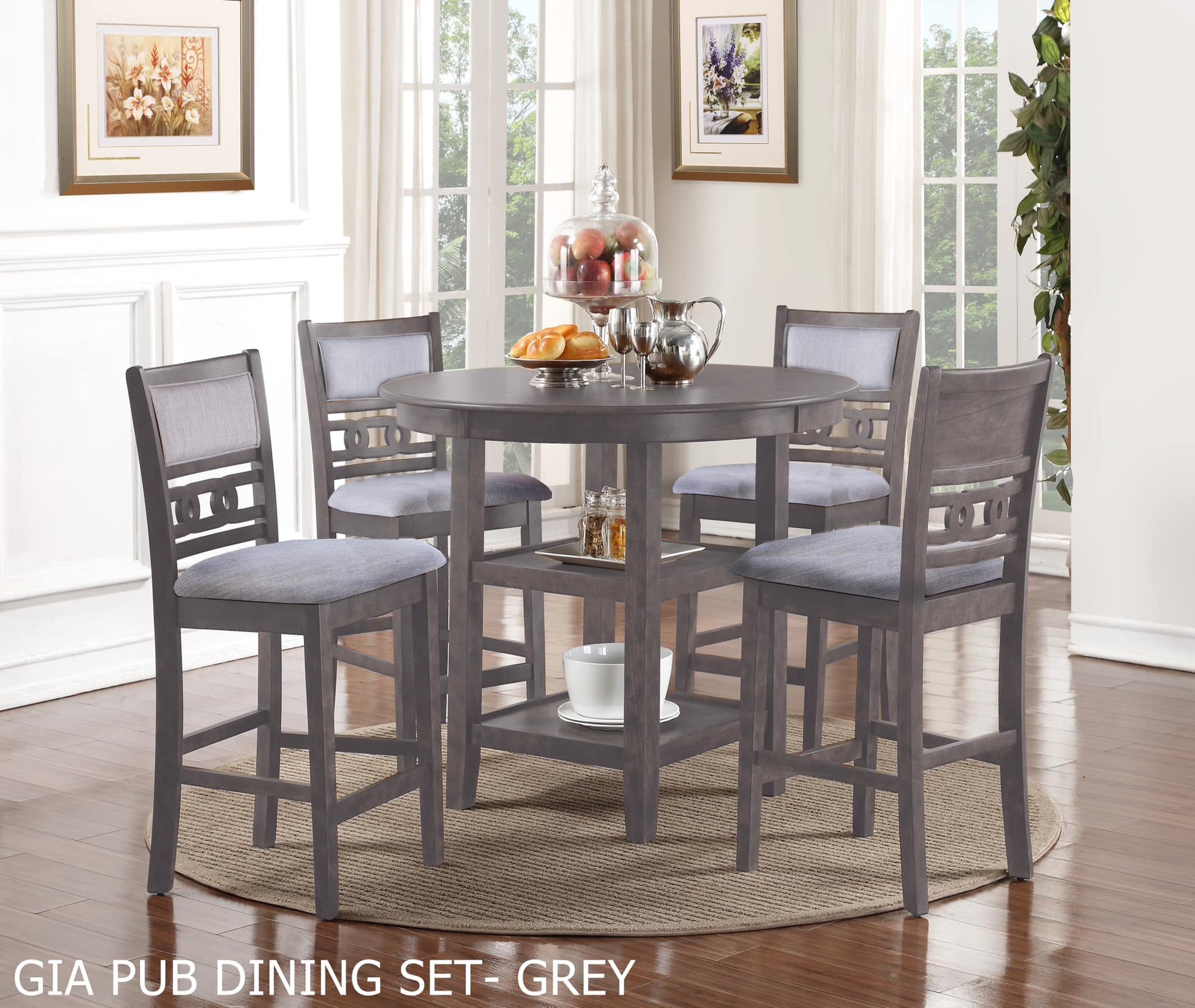 5 piece set includes table and 4 chairs. Available in regular or pub height in 4 different colors.
