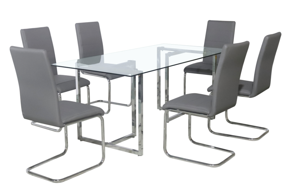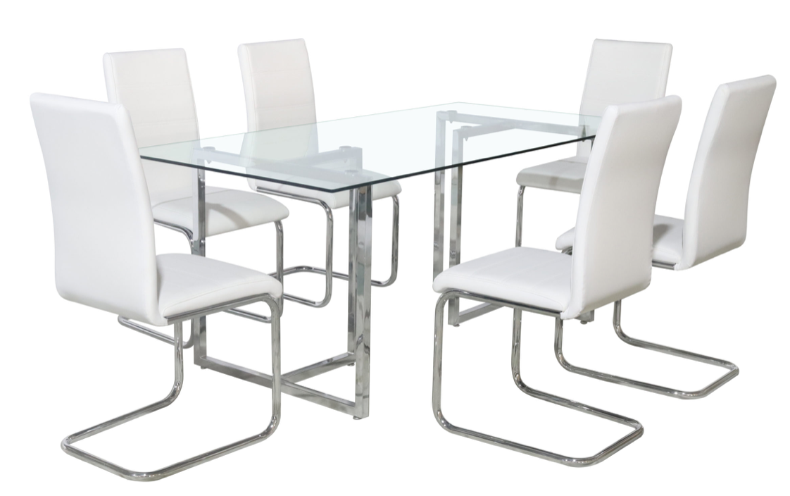 5 piece Zuri dining set includes 8mm tempered glass table and 4 chairs. Chairs available in black, gray or white.