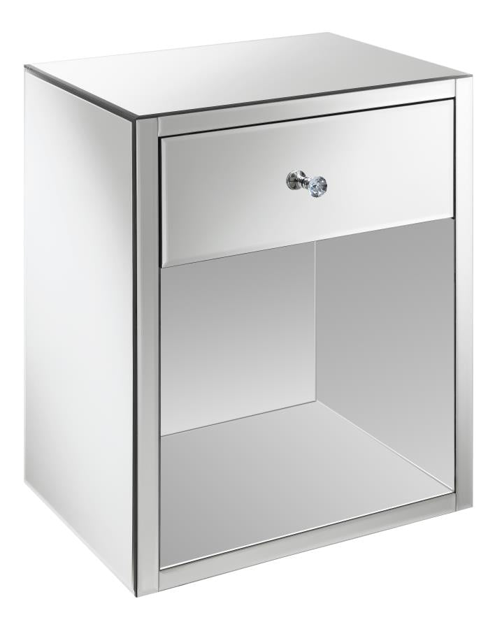 * Highly reflective mirror trim and paneling lends a glam vibe