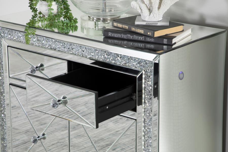 * Mirror and crushed crystal gems highlight and frame the subtle geometric details