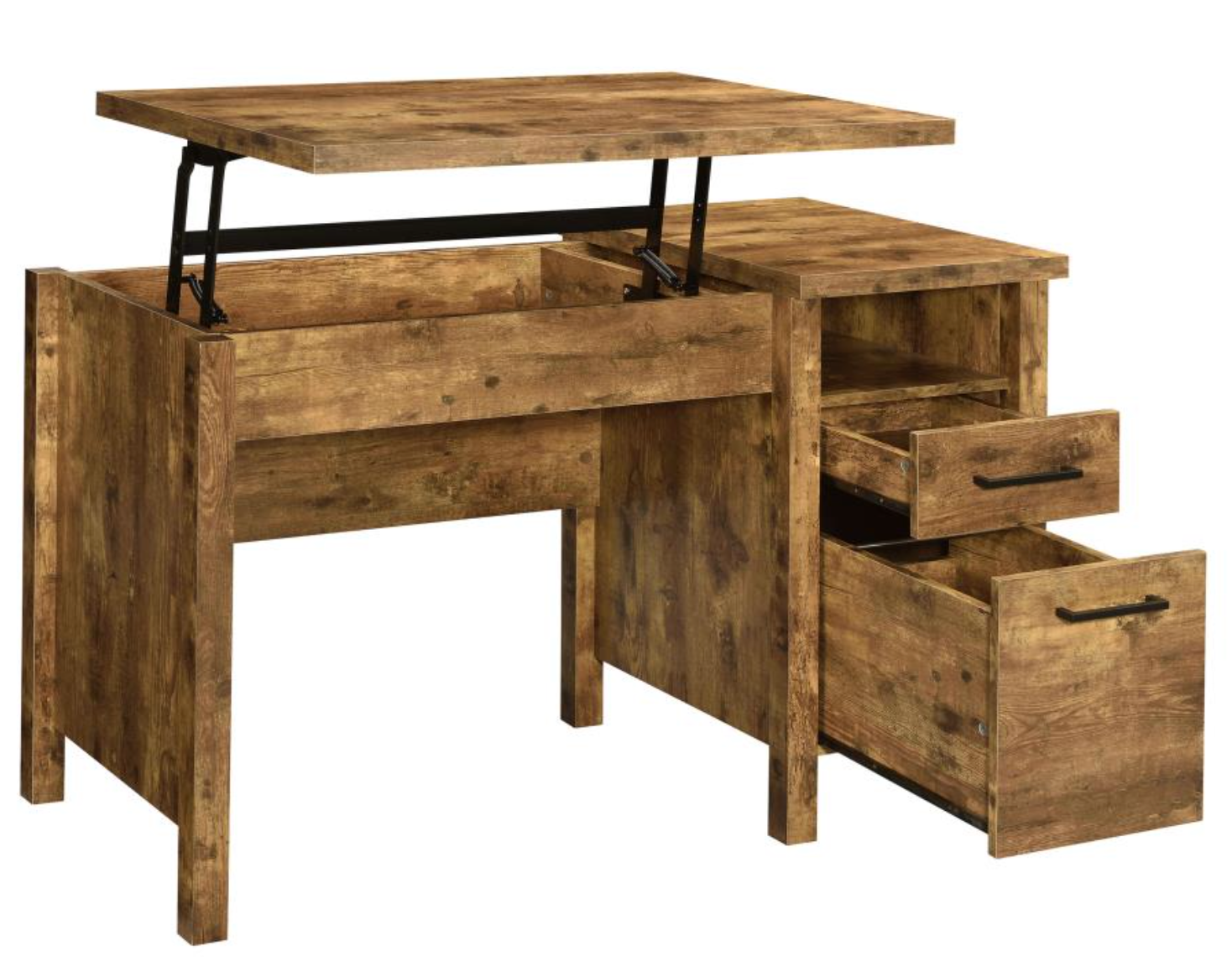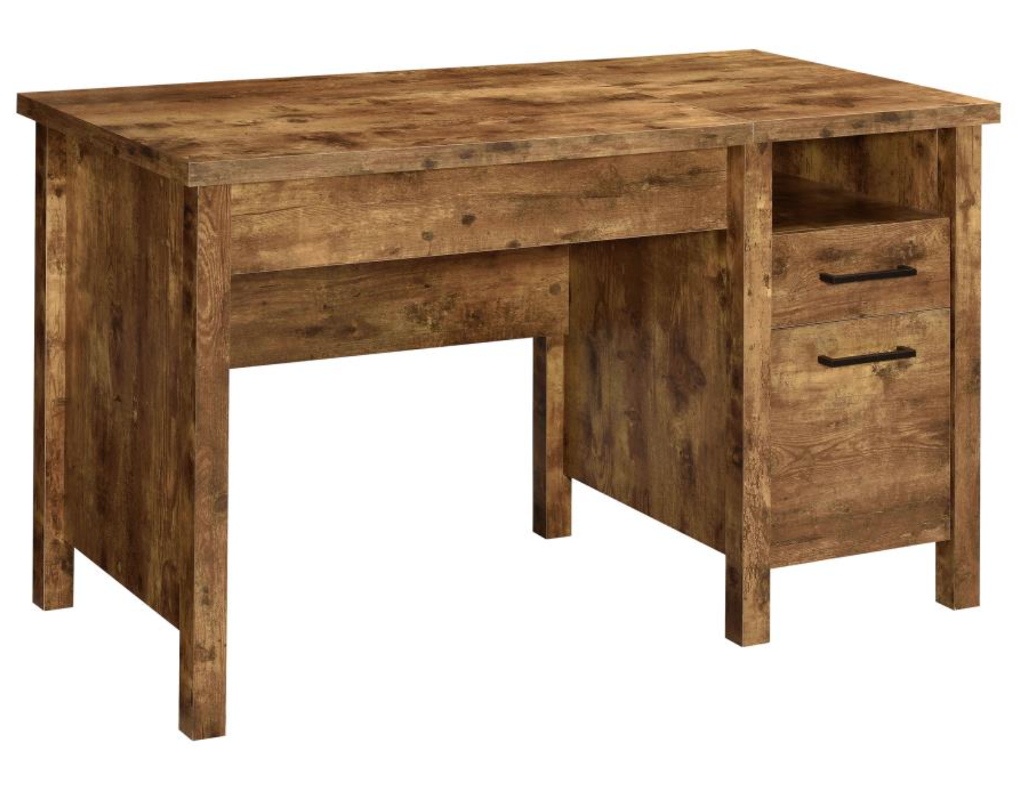 * Rustic office desk with scratch-resistant engineered veneer finished in antique nutmeg