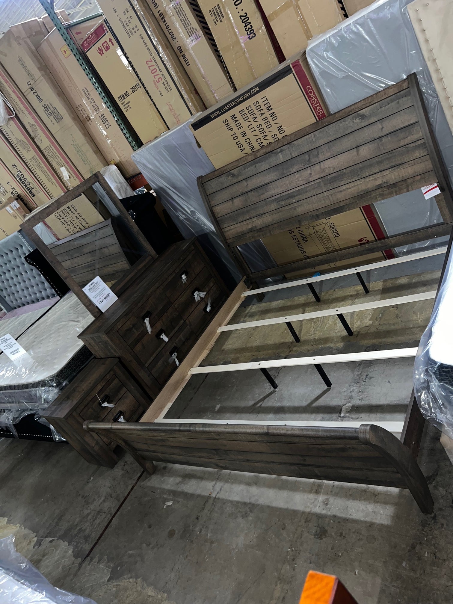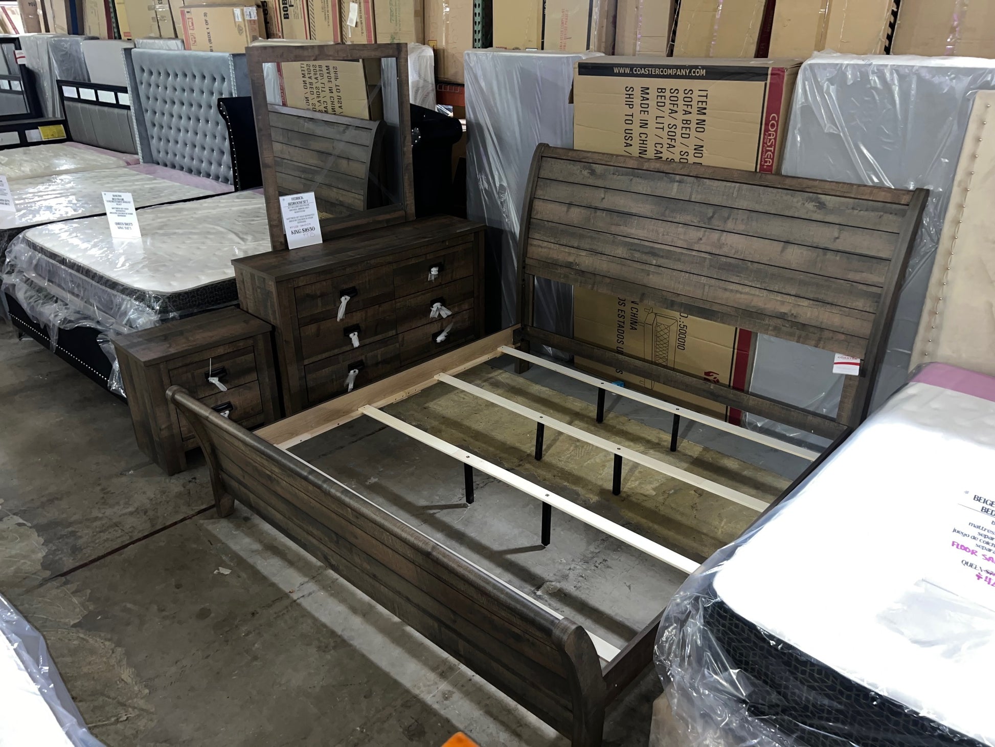 set includes king bed frame, dresser, mirror and 1 nightstand