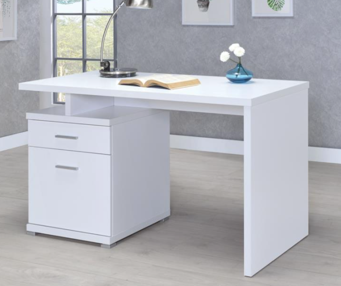 Ideal for a small office or a child's room, this office desk is built to impress. Enjoy the flexibility of a reversible setup that positions its drawer and file cabinet unit on the left or right side. This modular-style office desk provides a spacious writing surface, a storage drawer, and a file cabinet that accommodates both legal and letter size documents.