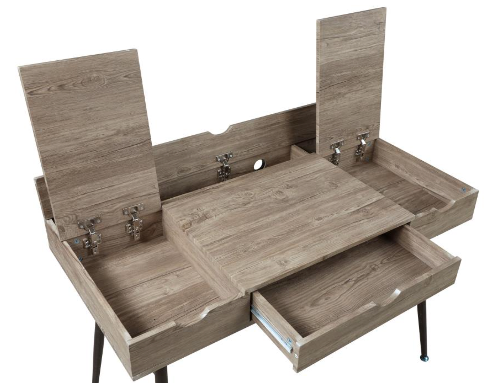 * Desk features three (3) lift-top storage compartments, one (1) drawer, and wire management cutout