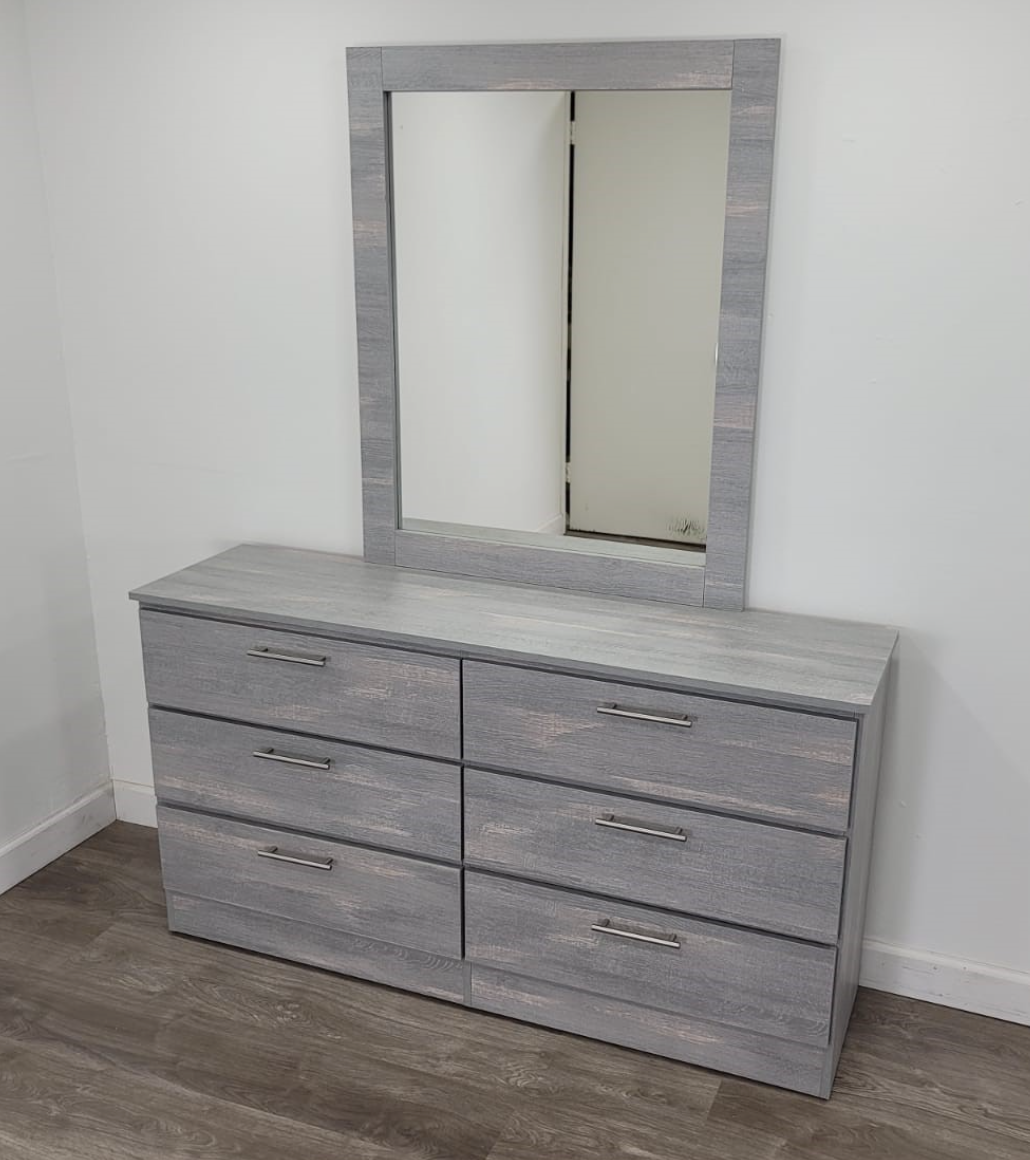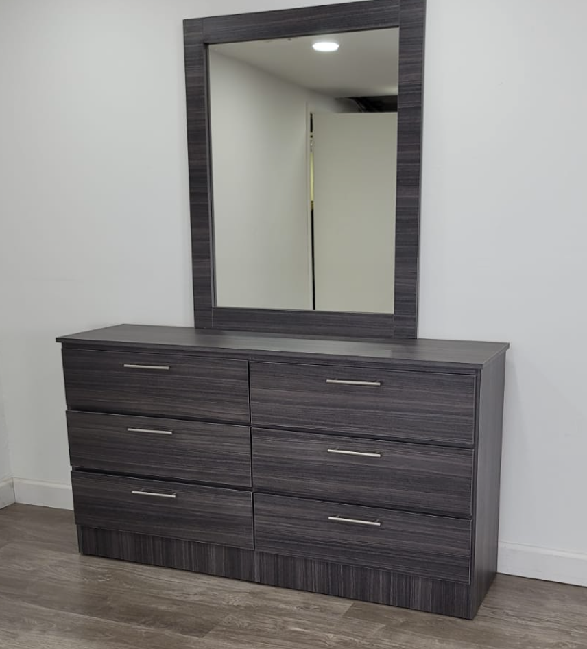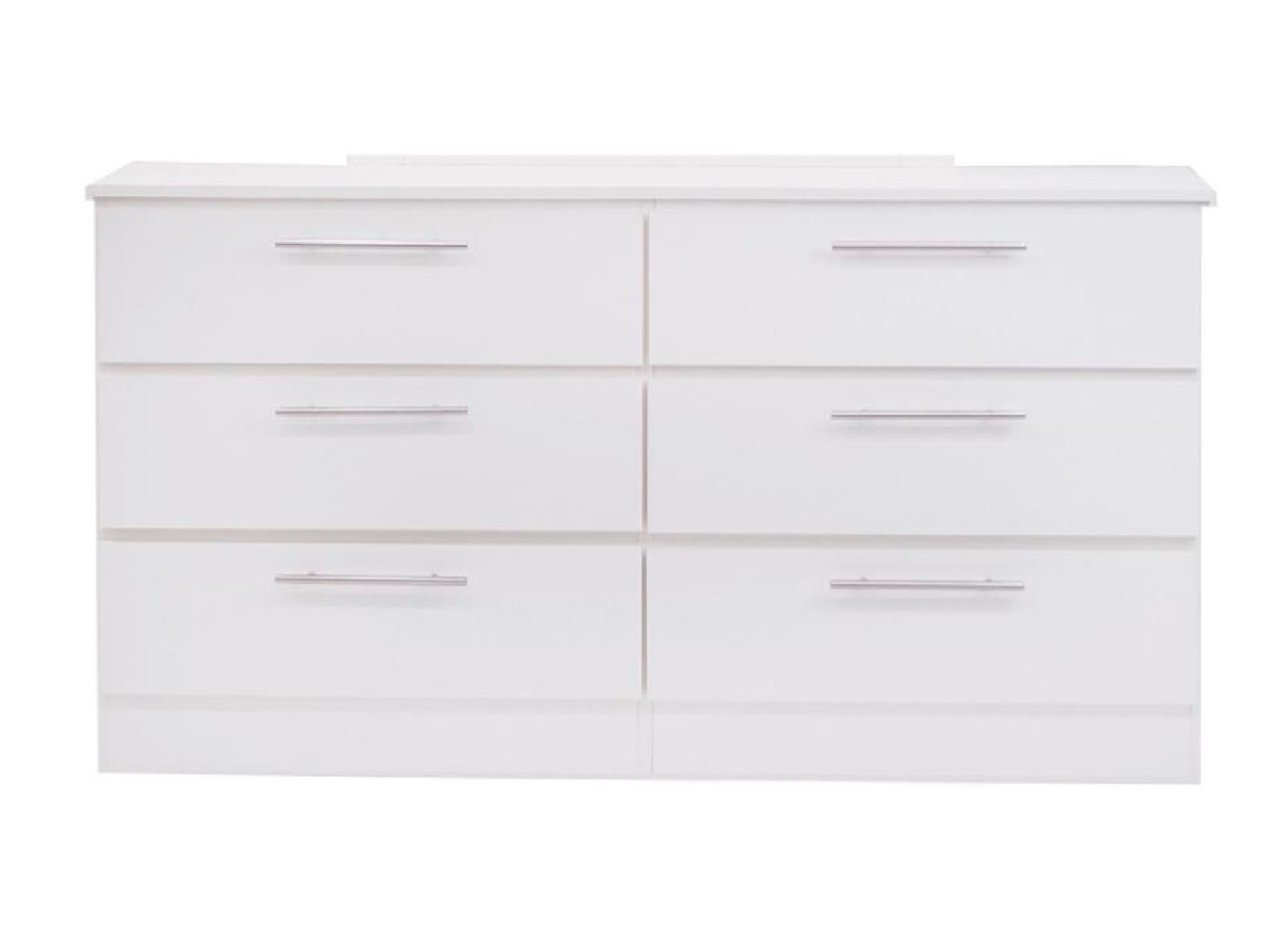 6 drawer dresser with silver handles available in black, white, cappuccino, charcoal or light gray.